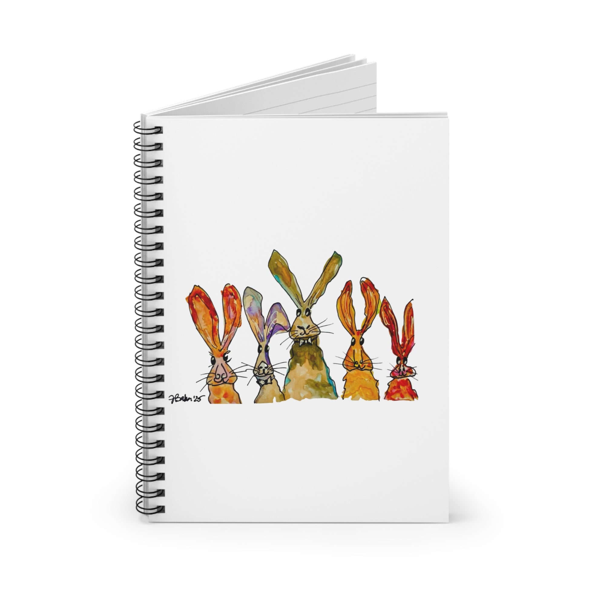 Bunny Row Spiral Notebook — Whimsical Watercolor Rabbits Ruled Journal