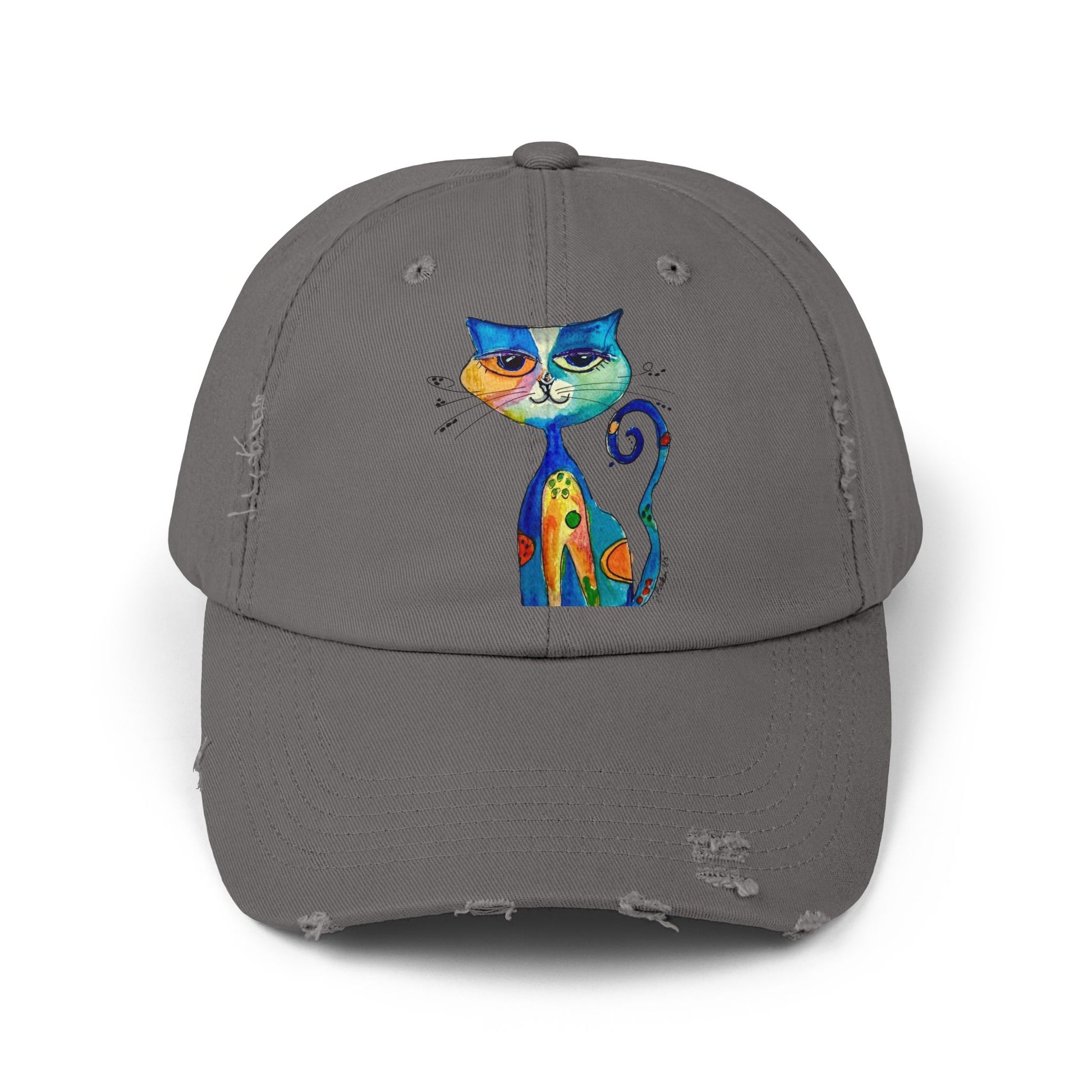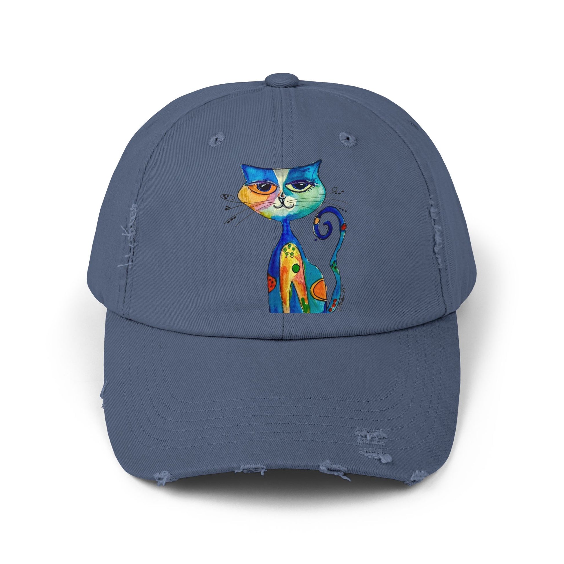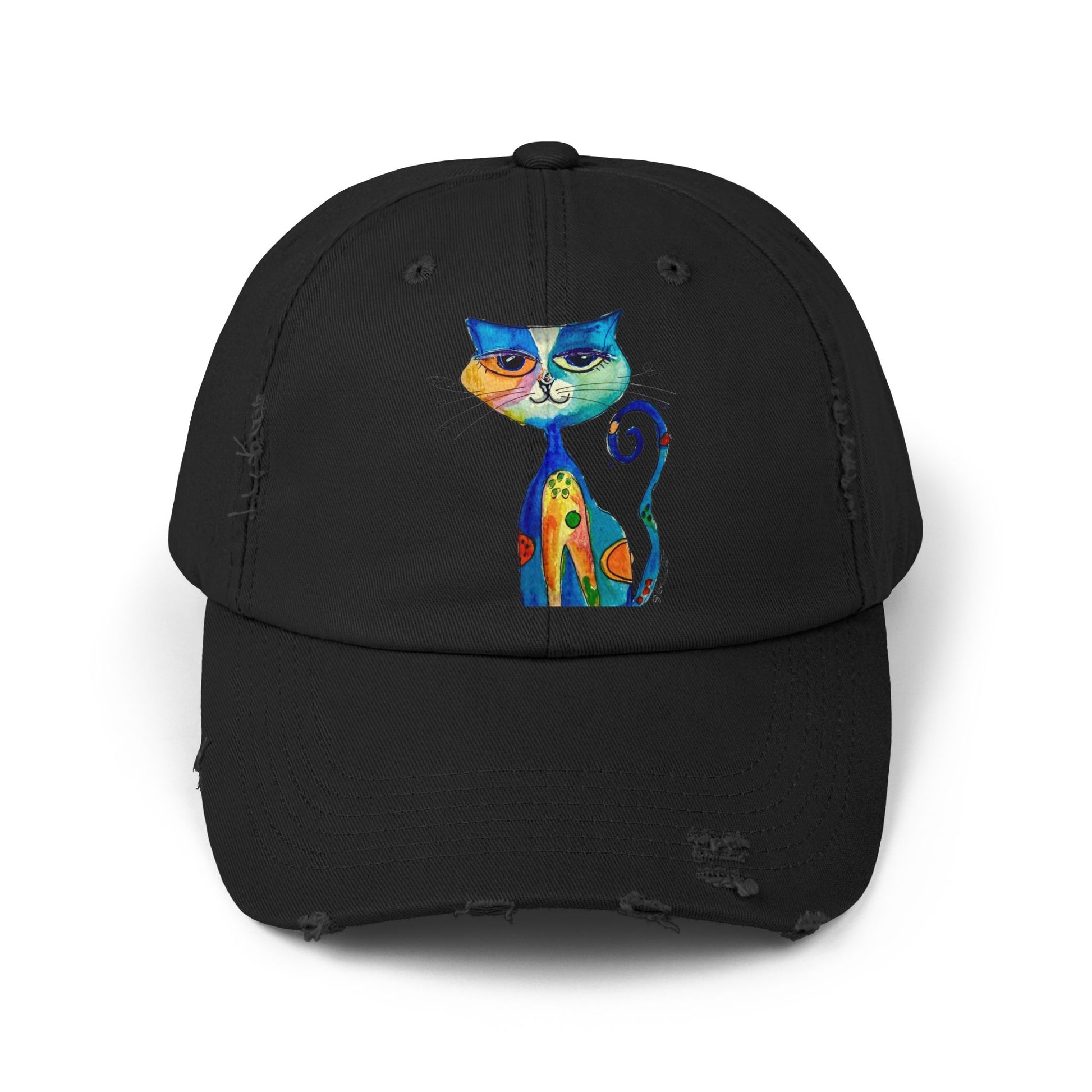 Cat Art Distressed Cap — Colorful Watercolor Cat Hat