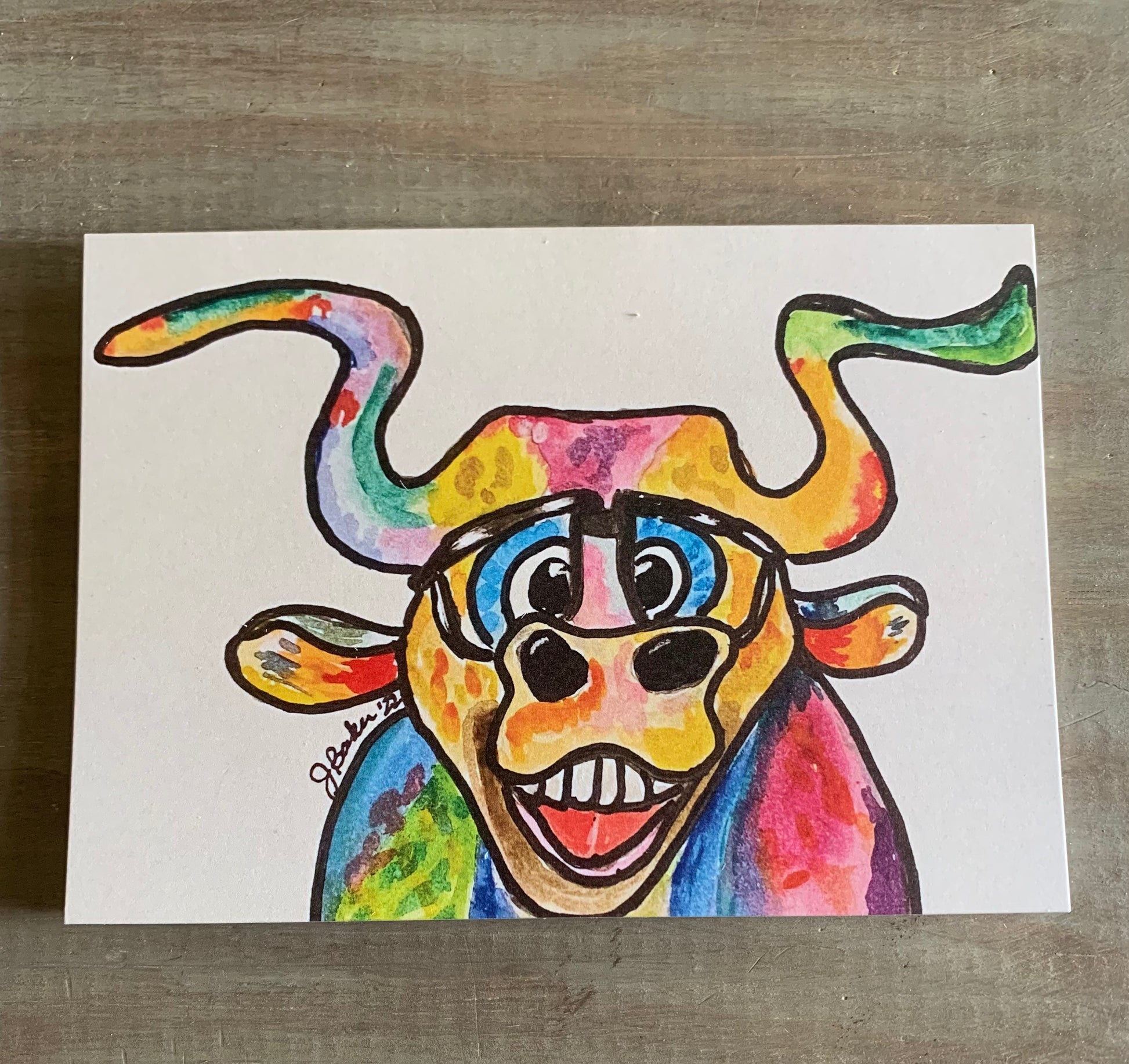 Brighten anyones day with colorful rabbit. This notecard is blank for you to add all your personalized thought. Based original watercolor artwork of Julie Baker.
