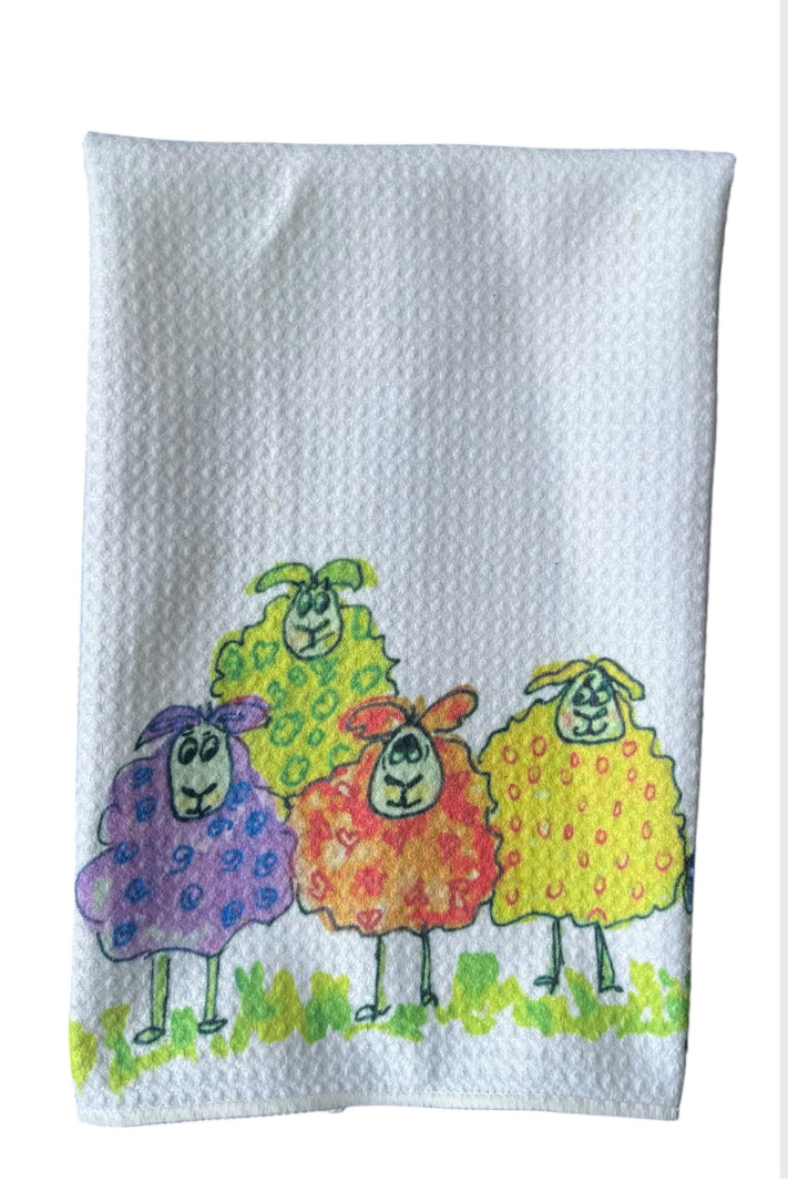 Soft and absorbent waffle knit kitchen towel. 16 x 24 microfiber towel is machine washable and durable. Based on original watercolor artwork by Julie Baker.