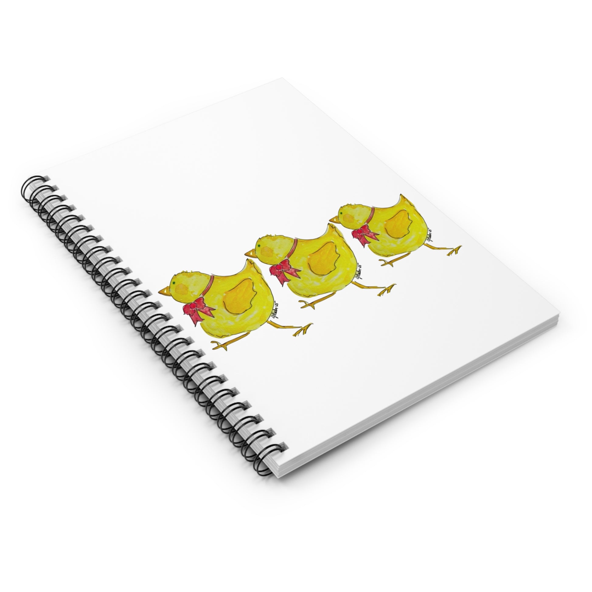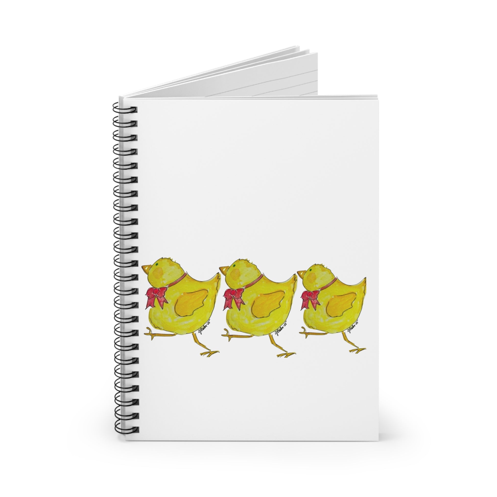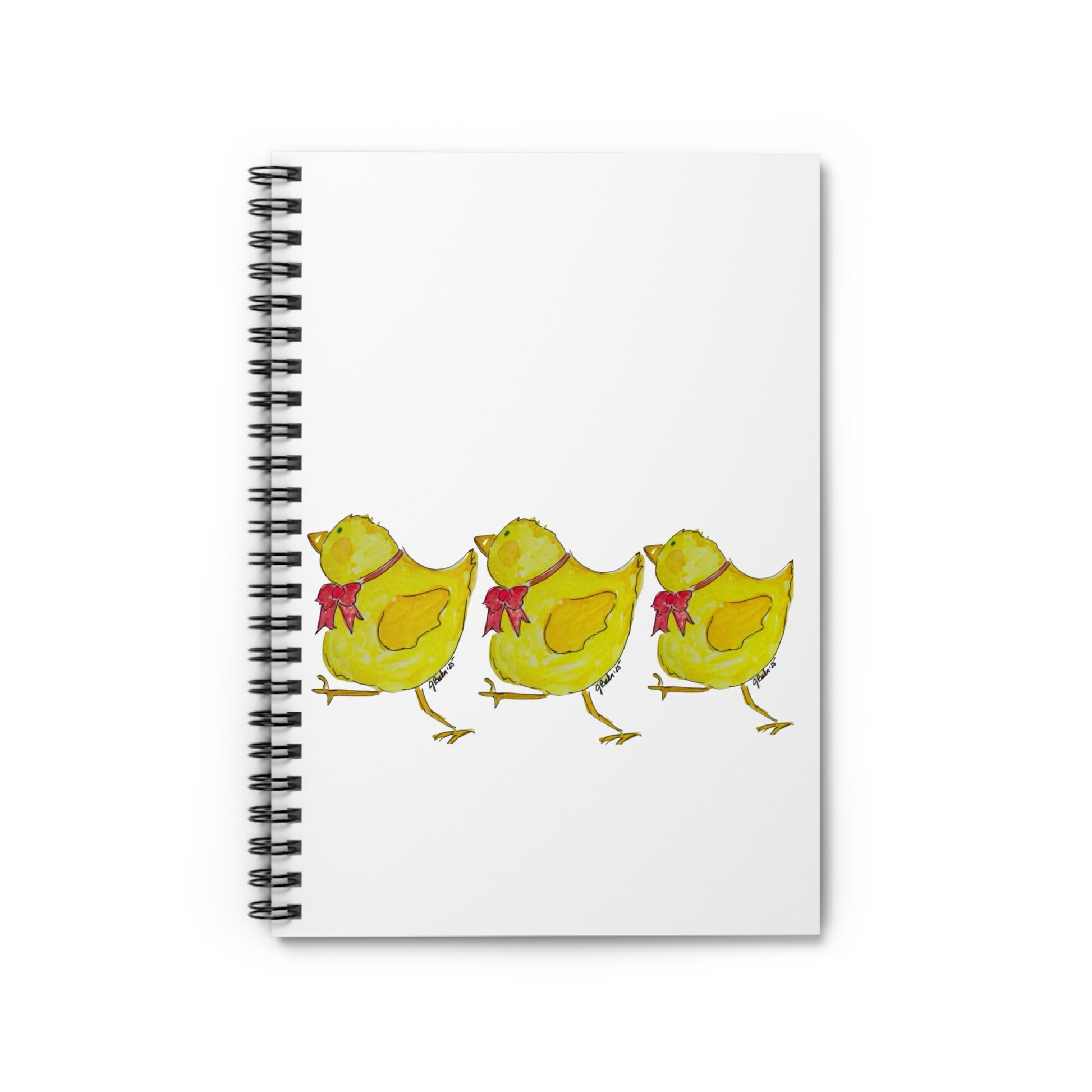Cute Chick Trio Spiral Notebook — Ruled Journal with Hand-Painted Yellow Chicks