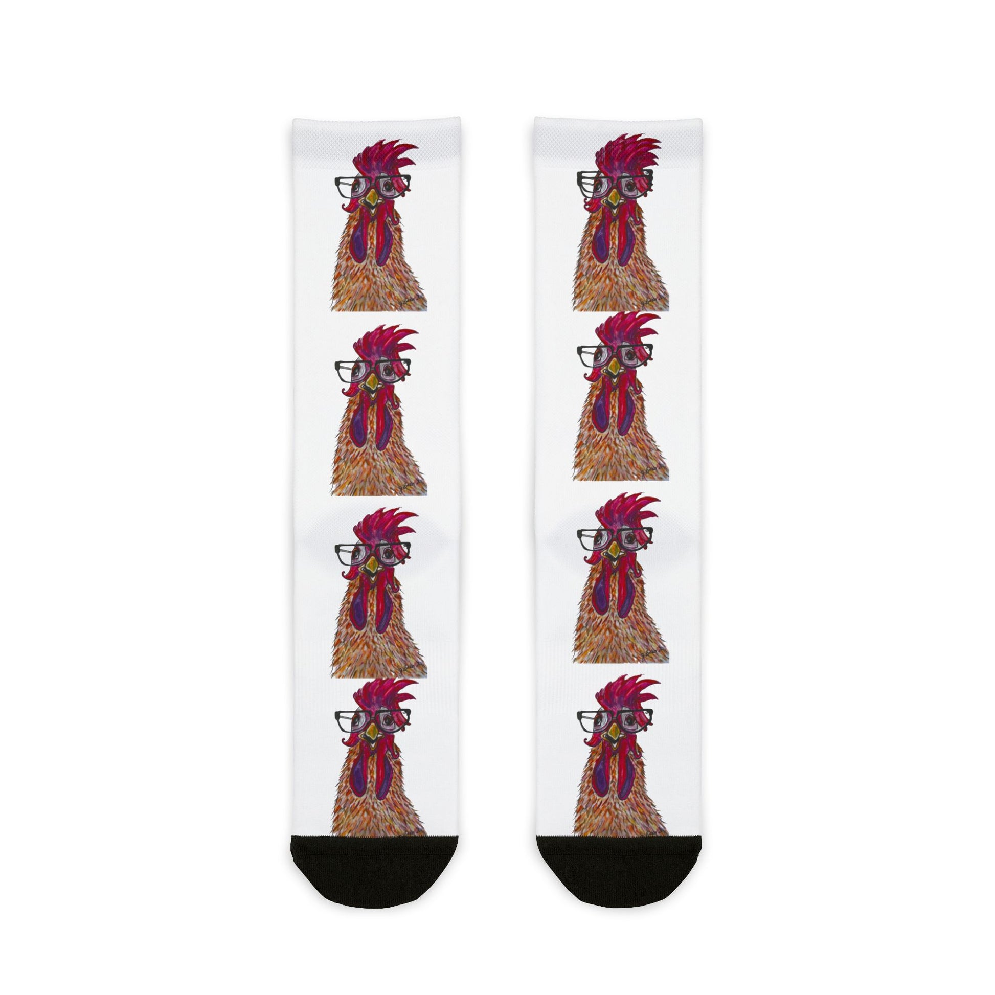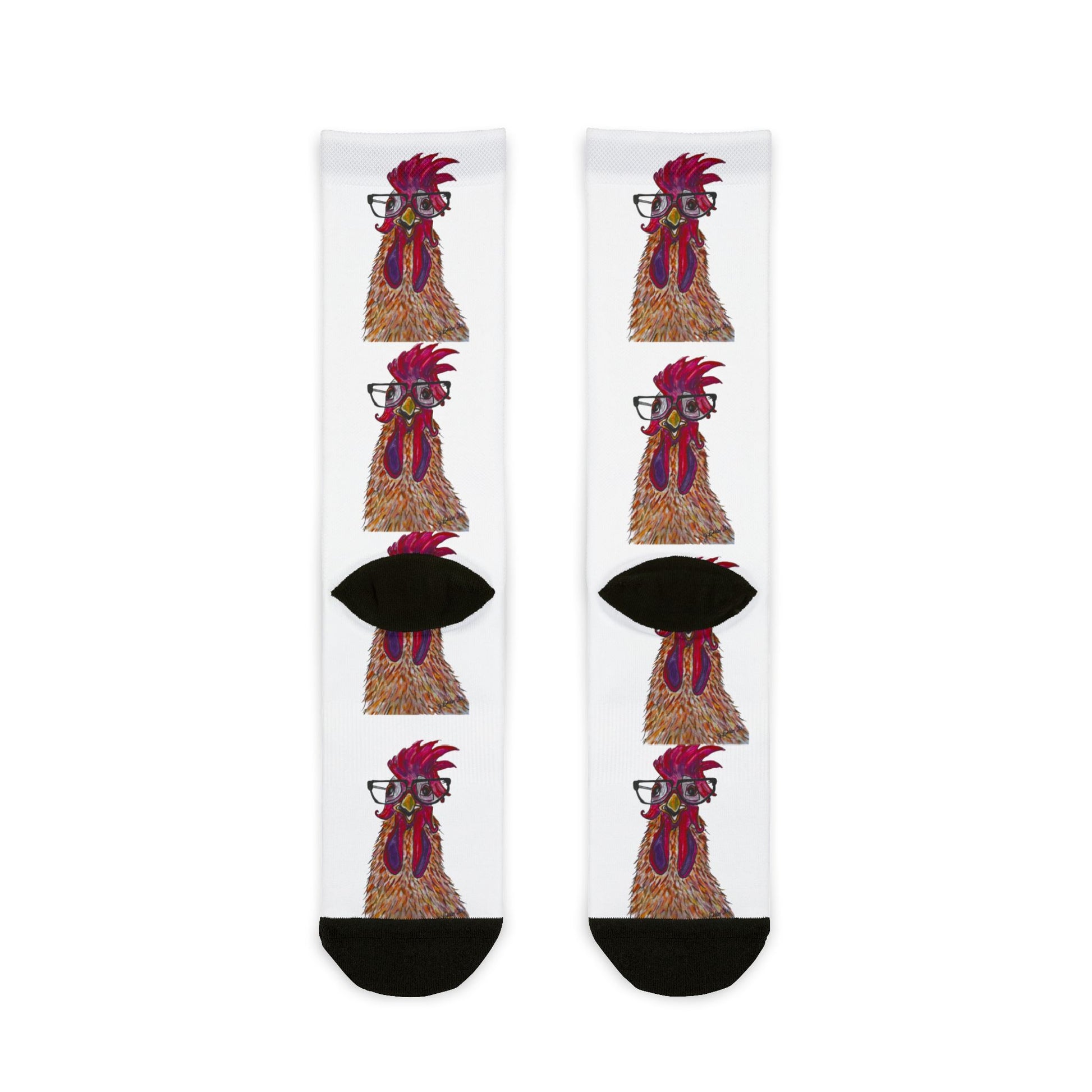 Chicken with glasses-Pattern Crew Socks — Cute Repeating Print Sublimation Socks